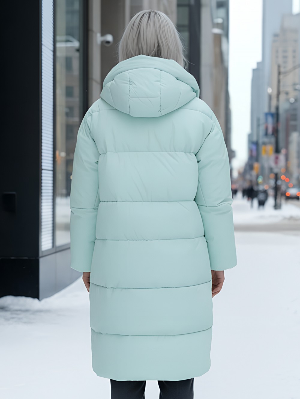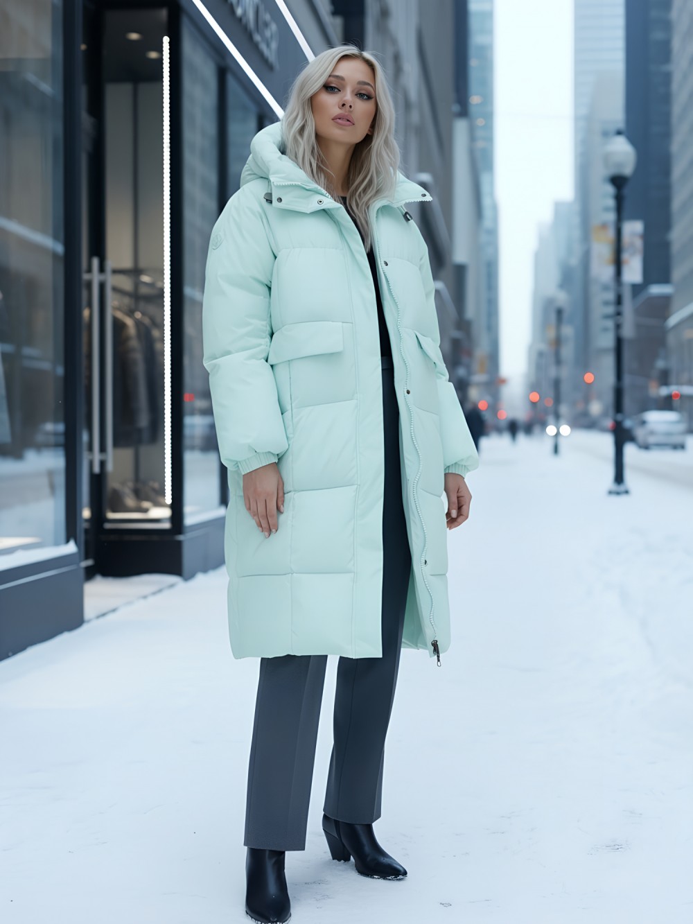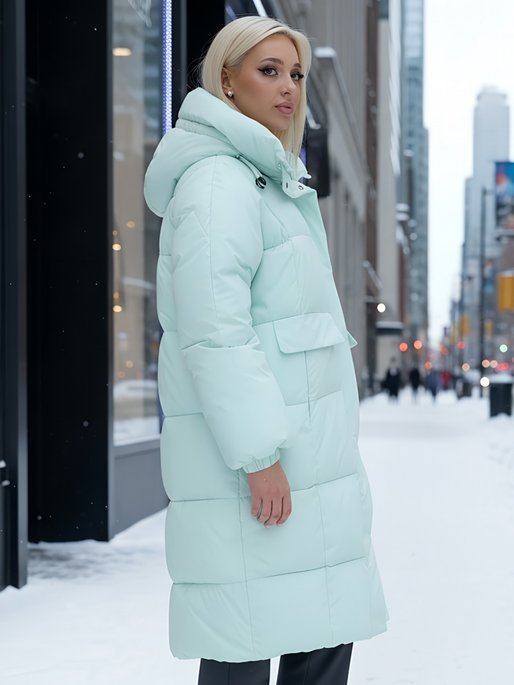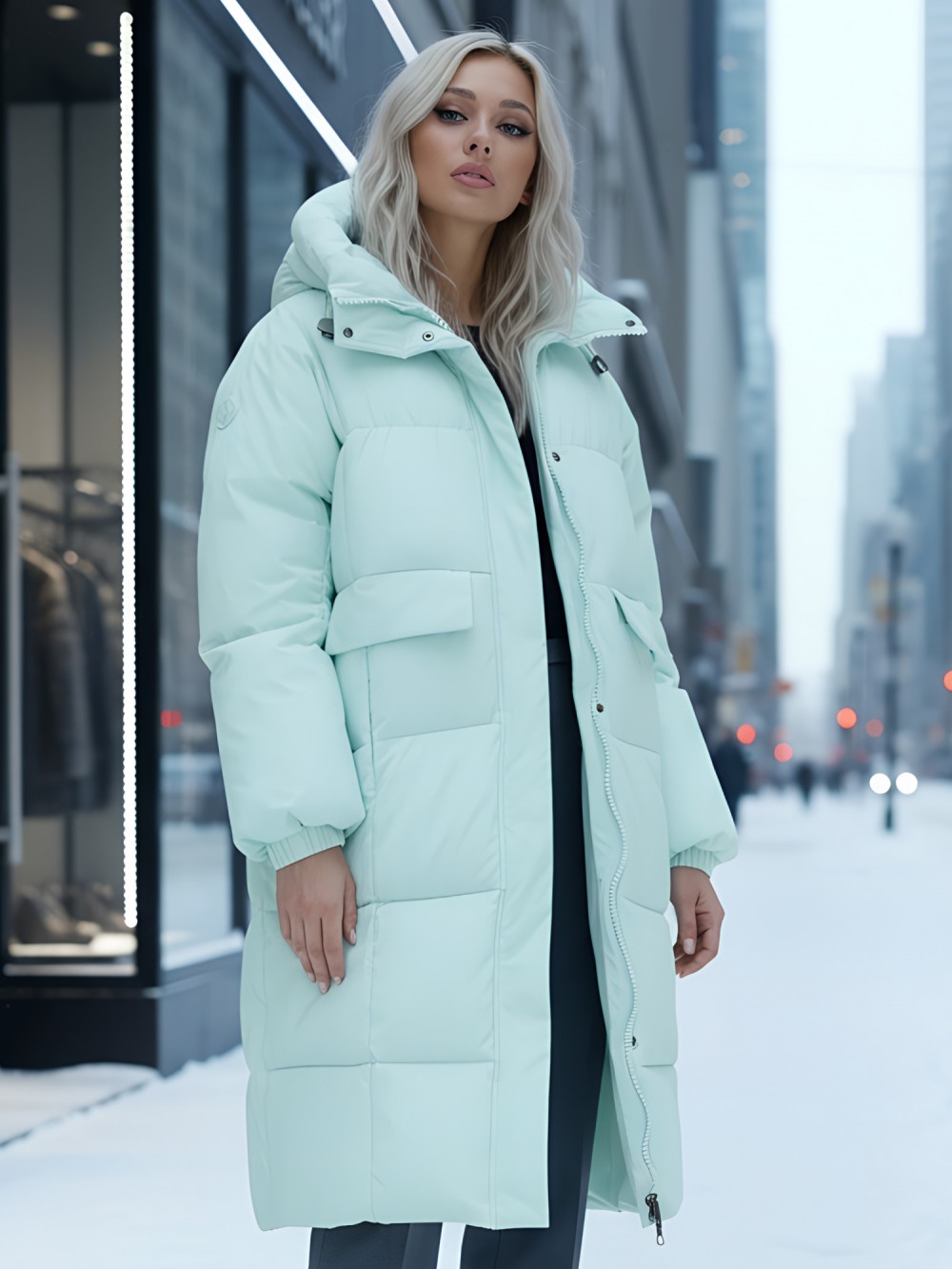 — Двойная молния: обеспечивает легкость застегивания и возможность регулировки объема, что делает пальто удобным в носке.