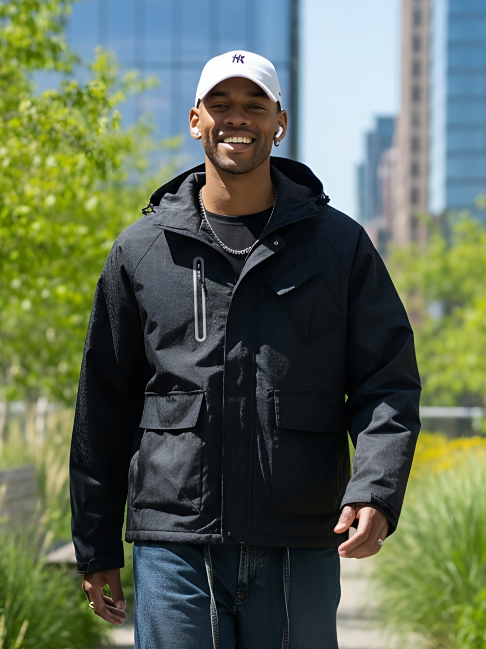Куртка имеет нагрудный карман, закрывающийся на кнопке, что обеспечивает надежное и удобное хранение мелких предметов. Кнопка позволяет быстро и легко открывать и закрывать карман, что делает его практичным для повседневного использования. Такой карман идеально подходит для хранения таких вещей, как телефон, ключи или документы, обеспечивая быстрый доступ к ним, при этом исключая риск их потери. Дизайн нагрудного кармана также добавляет стильный акцент к общей эстетике куртки.