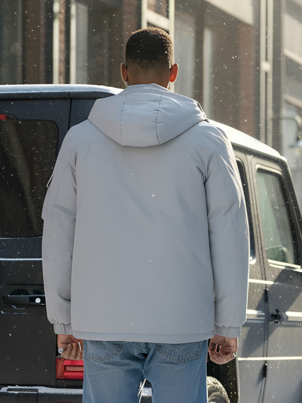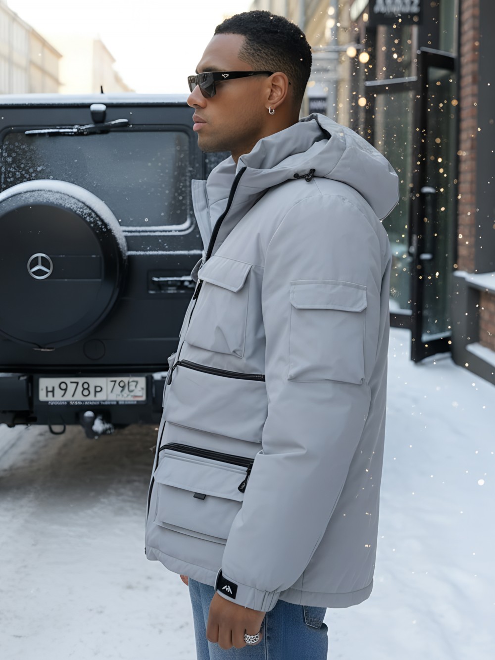 Капюшон надежно защищает от различных внешних факторов, таких как ветер.