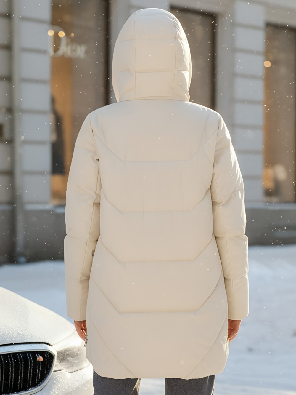 Надёжно защищает от холода, ветра и осадков. Идеален для зимней погоды, не требует головного убора.