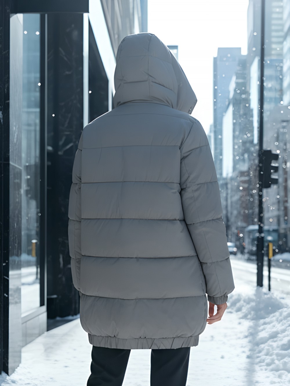 Надёжно защищает от холода, ветра и осадков. Идеален для зимней погоды, не требует головного убора.