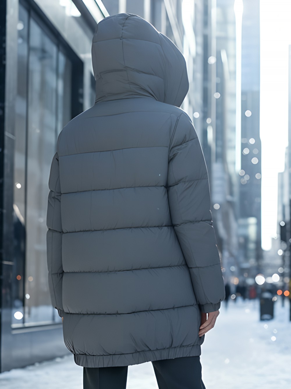 Надёжно защищает от холода, ветра и осадков. Идеален для зимней погоды, не требует головного убора.