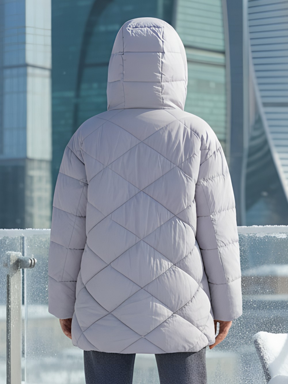 Надёжно защищает от холода, ветра и осадков. Идеален для зимней погоды, не требует головного убора.