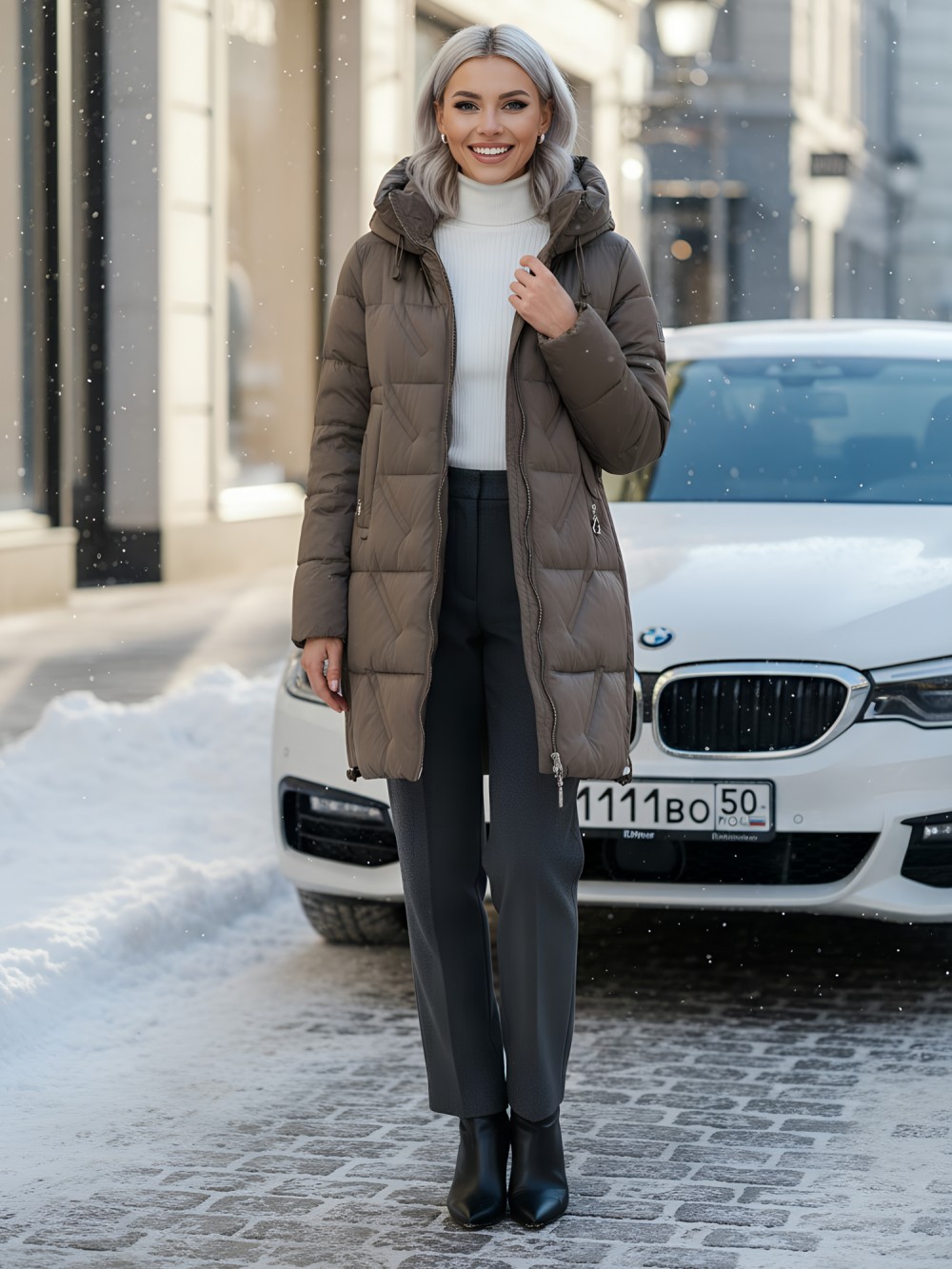 Классическая зимняя женская куртка с капюшоном – стильный и функциональный выбор для холодного сезона. Доступна в размерах от 46 до 54, эта модная куртка изготовлена из высококачественных мембранных материалов, таких как полиэстер и плащевка, что обеспечивает надежную защиту от влаги с водонепроницаемостью 7 000 мм. Состав из 100% полиэстера и синтепона гарантирует тепло даже при температурах от +5° до -20°C.