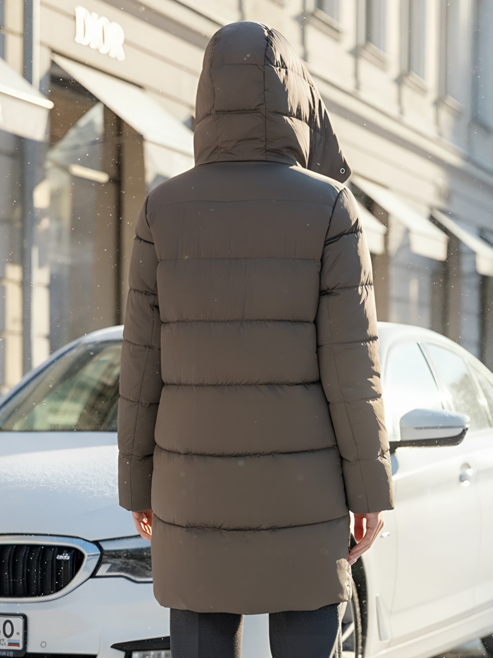 Надёжно защищает от холода, ветра и осадков. Идеален для зимней погоды, не требует головного убора.