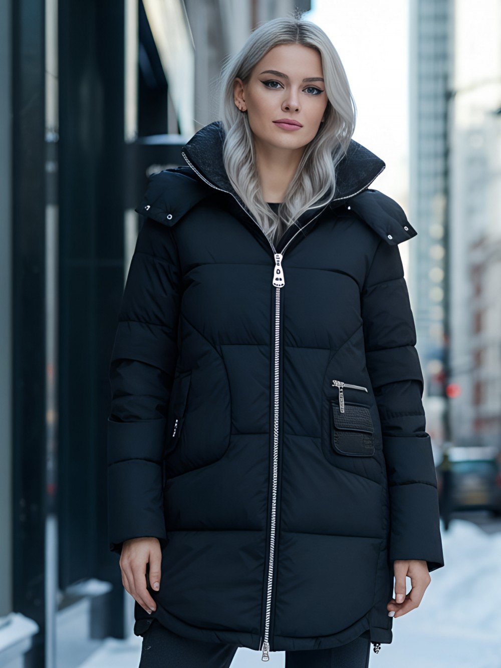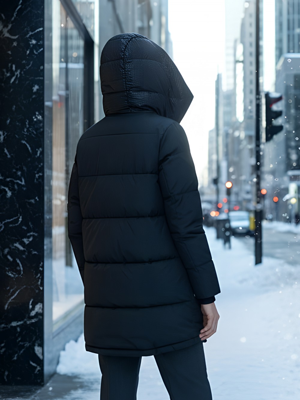 Надёжно защищает от холода, ветра и осадков. Идеален для зимней погоды, не требует головного убора.