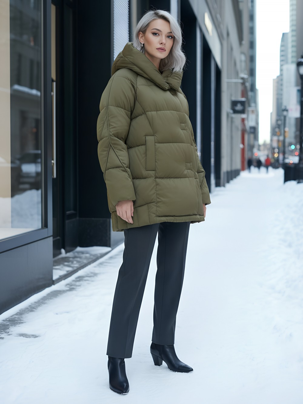 Эта куртка выделяется своим прямым и свободным покроем, длиной до бедра, что придаёт ей современный и стильный вид. Не съёмный капюшон и длинные рукава обеспечивают дополнительное тепло и защиту от ветра, а разнообразие цветов — черный, светло-коричневый, горчичный, хаки и коричневый — позволяет выбрать идеальный вариант для вашего гардероба.