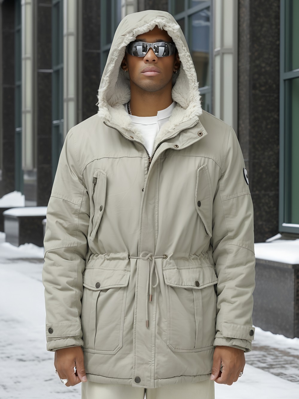 Капюшон надежно защищает от различных внешних факторов, таких как ветер.